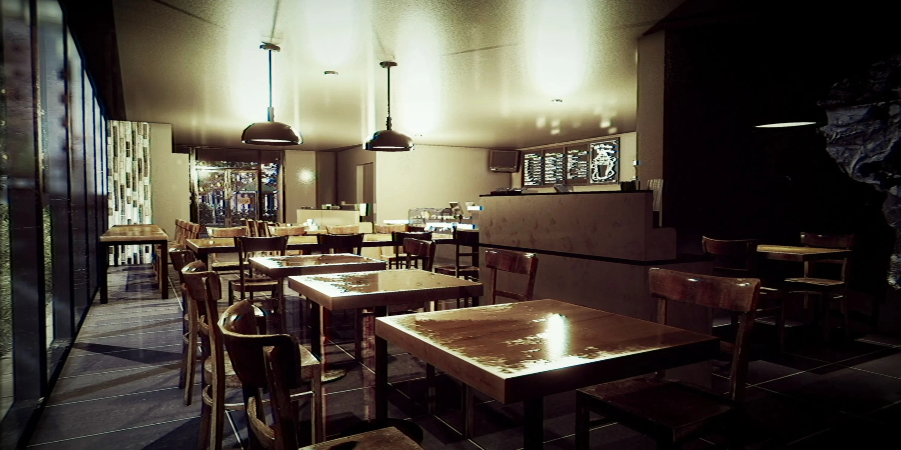 Ảnh chụp màn hình trong game The Closing Shift thể hiện không gian quán cà phê vắng vẻ